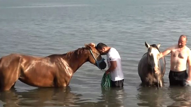 Yaralanan atlar için şifa kaynağı olan Van Gölü, yarışa hazırlanan atlara da ev sahipliği yapıyor.