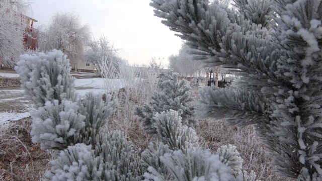 Ardahan'ın Göle ilçesinde dün gece sıcaklık sıfırın altında 21 dereceye kadar düştü. Ağaçlara düşen kırağı donarak güzel görüntüler oluşturdu.