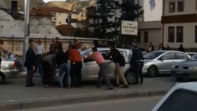 Tokat’ta Gaziosmanpaşa Bulvarı üzerinde arızalanan yaklaşık 1,5 ton ağırlığındaki otomobil, sıkışan trafikte bekleyen vatandaşlar tarafından el birliğiyle yerinden kaldırıldı.