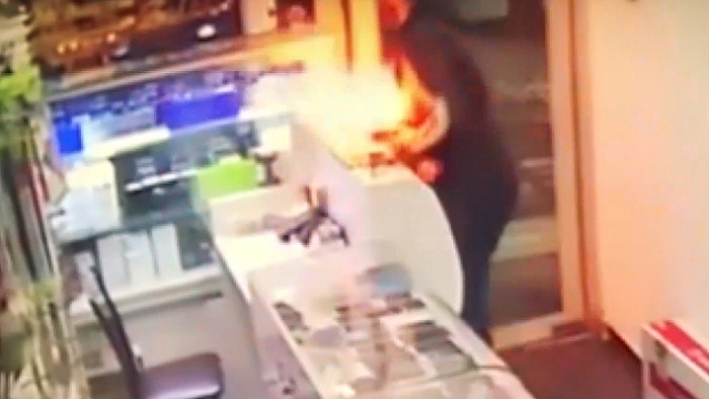Arızalı telefon tamircinin elinde alev aldı