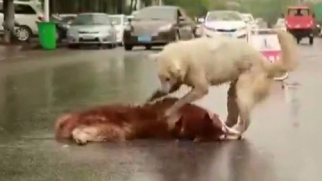 Trafiğin ortasında can veren arkadaşını uyandırmaya çalışan köpeğin çabası izleyenleri duygulandırdı. Ders veren olay Çin’de gerçekleşti. Patileriyle vurdu, salladı, kokladı.