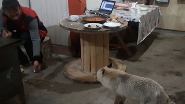Artvin'de aç kalan tilki dağ evine misafir oldu
