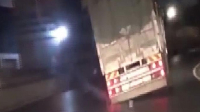 Gebze'de virajlı yolda aşırı hızlı giden kamyon devrildi. Kaza anı cep telefonuyla kaydedildi.