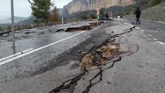 Mersin'de heyelan nedeniyle bir bölümü çöken Silifke-Mut kara yolu trafiğe kapatıldı.