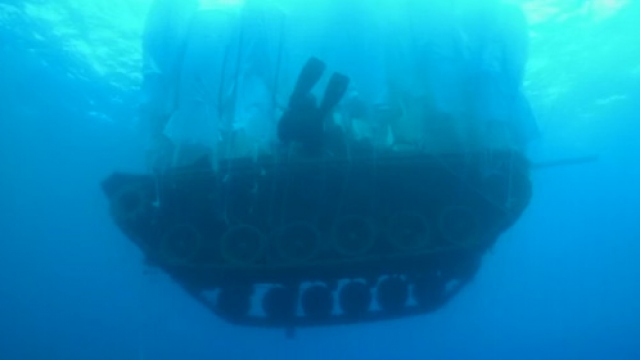 Antalya’nın Kaş ilçesinde dalış turizmi için batırılan Türk Silahlı Kuvvetlerine (TSK) ait 45 tonluk 1960 model tankın deniz dibine indiriliş görüntüleri paylaşıldı. Türk Silahlı Kuvvetleri’ne (TSK) ait 45 tonluk tank geçtiğimiz hafta Kaş Limanında 5 metre derinliğe batırılmıştı. Tank hava koşullarının düzelmesinin ardından Güvercin Adası Mevkii’ne taşınarak 20 metre derinliğe batırıldı.