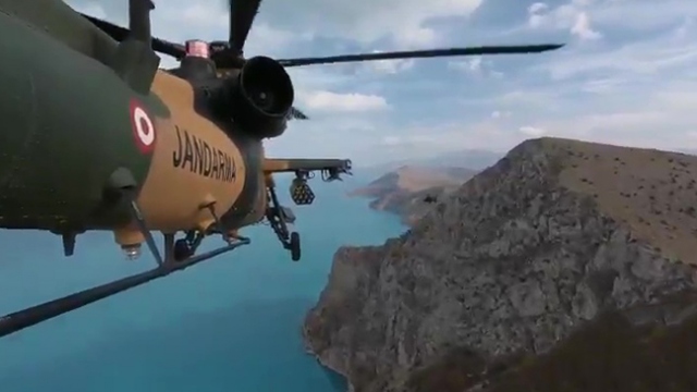 Jandarma Genel Komutanlığı, Van ve Van gölü üzerinde uçan ATAK helikopterinin kuyruk kamerasına takılan görüntüleri paylaştı.