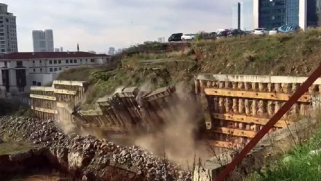 Ataşehir'de istinat duvarının çökme anı kameralara yansıdı