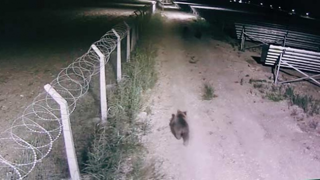 Sivas'ta, yiyecek aramak için bir güneş enerji santralinin içine giren üç ayı güvenlik kameralarına yansıdı.