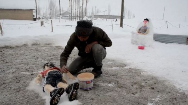 Hakkari Yüksekova'da yaşayan ve adını kardan yaptığı f16 ile duyuran Mehmet Şerif Karahan, bebek ölümlerine dikkat çekebilmek için 3 yaşındaki Aylan bebek ve 5 yaşındaki Ümran bebeğin kardan heykellerini yaptı.