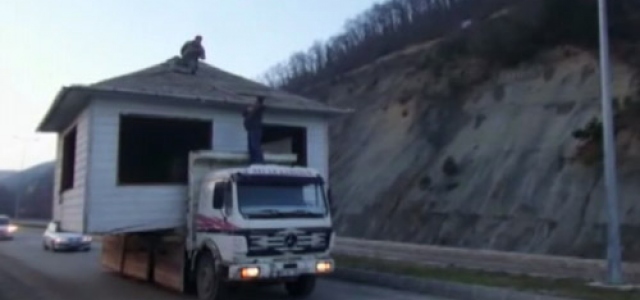 Ev taşımak deyince akla bir kamyonla eşyaların taşınması gelir. Sinop'un Erfelek ilçesinde de bir ev taşında, ama taşıma eşine ender rastlanan bir türdendi. Erdoğan Kalyoncu, babasından miras kalan evi kamyona yükledi ve yeni yerine götürdü...