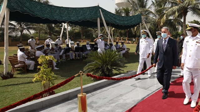Milli Savunma Bakanı Hulusi Akar, Pakistan Deniz Kuvvetleri’nin Karaçi’deki eğitim tesisleri ziyaretinde Mehter sürprizi ile karşılandı.