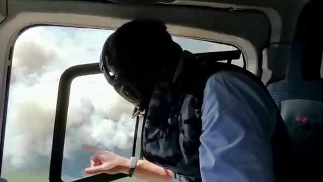 Tarım ve Orman Bakanı Bekir Pakdemirli, İzmir'in Karabağlar ilçesinde çıkan orman yangınını helikopter ile havadan inceledi.