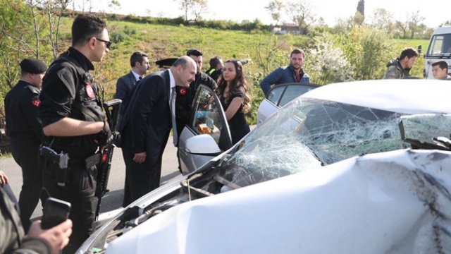 Tekirdağ'da İçişleri Bakanı Süleyman Soylu'nun konvoyu önünde meydana gelen trafik kazasında 5 kişi yaralandı. Bakan Soylu'nun konvoyunda bulunan sağlık ekipleri yaralılara ilk müdahaleyi yaparken, Bakan Soylu da aracından inerek kazazedelerle yakından ilgilendi.