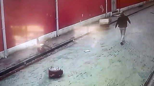 Aydın'da bir apartmandan düşen fırın güvenlik kameralarına kaydedildi.