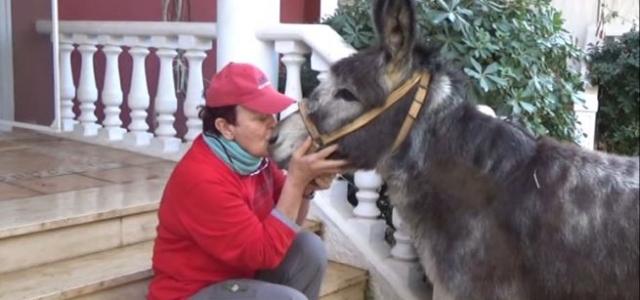 "Can kız" adı verilen eşek 3 ay önce ormanlık alanda bulundu. Muğla Köyceğiz'de Hayvan Dostları Derneği'ne ait barınakta gönüllü veterinerler tarafından tedavi edildi. Barınakta sağlığına kavuşan Can kız'ı Köyceğiz'de yaşayan Sevinç Müller, sahiplendi.