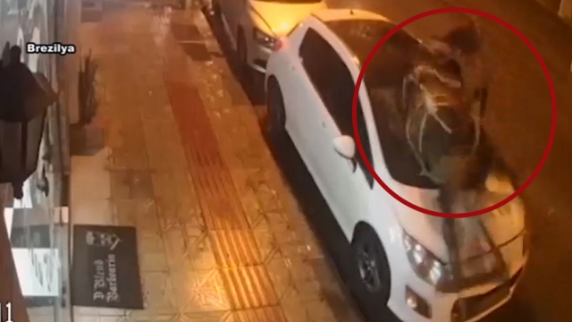 Brezilya’nın Santa Catarina eyaletinde sahibinin elinden kaçan bir at, hızını alamayarak park halindeki bir otomobilin üzerine çıktı. O anlar güvenlik kamerasına yansıdı.