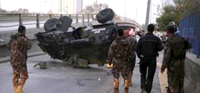 Başkentte zırhlı polis aracı üst geçitten düştü