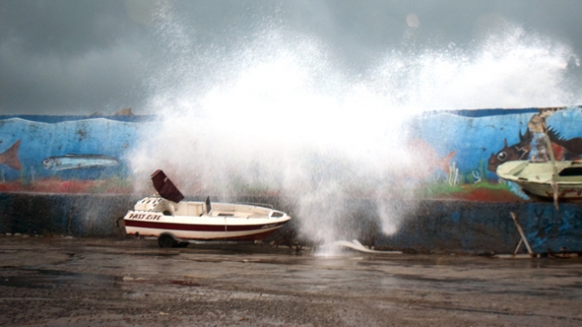 Düzce'nin Akçakoca ilçesinde etkili olan kuvvetli rüzgar nedeniyle dalga boyu 7 metreye ulaştı.