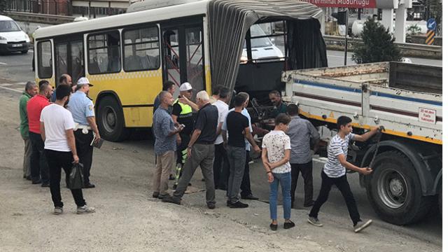 Belediye otobüsü refüje çarparak ikiye ayrıldı: 4 yaralı