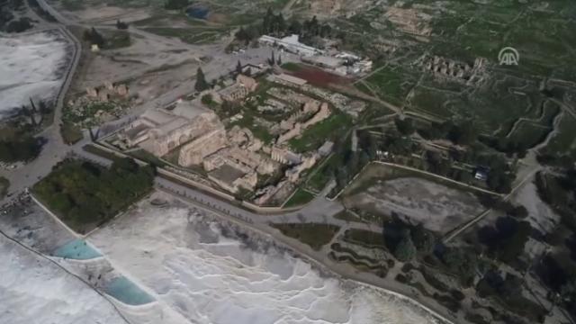UNESCO Dünya Miras Listesi'nde bulunan Pamukkale, Hierapolis Antik Kenti'ndeki termal havuzuyla ziyaretçilerini ağırlıyor.