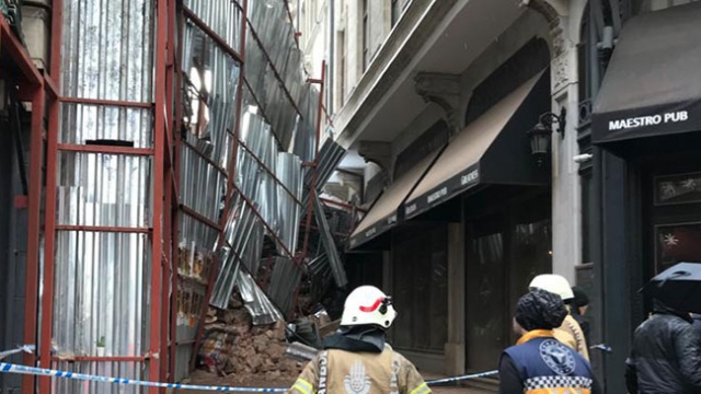 Beyoğlu Asmalımescit'te tadilattaki binada çökme meydana geldi. O anlar kameralara yansıdı.