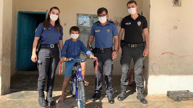 Bisikleti bozulan çocuğa polislerden yeni bisiklet sürprizi