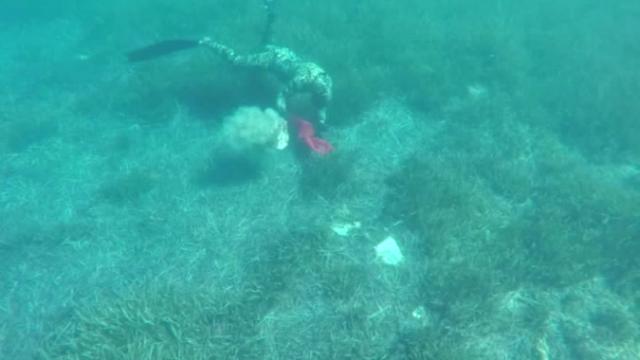 Bodrum'un Akyarlar ilçesinde 10 balık adam saatlerce deniz dibi temizliğiyle uğraştı.