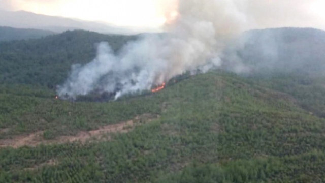 Muğla'nın Bodrum ilçesinde ormanlık alanda çıkan yangına havadan ve karadan müdahale ediliyor.