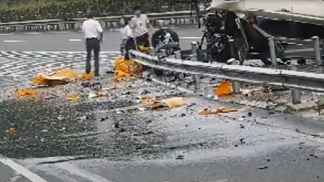 Çin'de meydana gelen kazada bir cip, otoyol bağlantısında bulunan su dolu varillere çarptı. Araçta bulunan 4 aylık hamile kadın ve eşi, takla atan cipin içerisinden sürünerek çıktı.