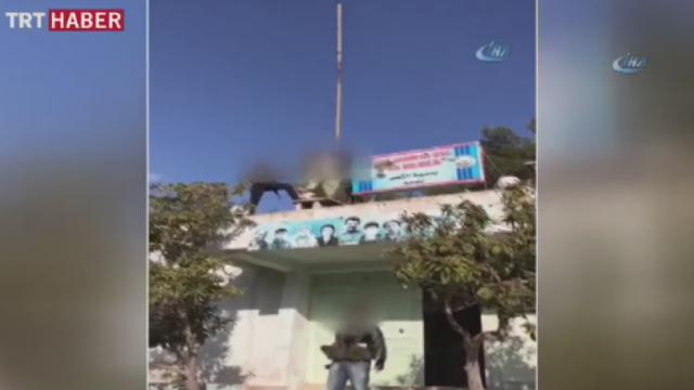 Özgür Suriye Ordusu ve Türk Silahlı Kuvvetleri tarafından temizlenen Bülbül köyündeki karakolda bulunan terör örgütü PYD'yi simgeleyen bez parçası indirildi.