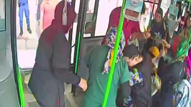 Bursa İnegöl'de bir halk otobüsü şoförünün araç içinde fenalaşan yaşlı kadını kurtarıp hastaneye götürmesi saniye saniye kameralara yansıdı.