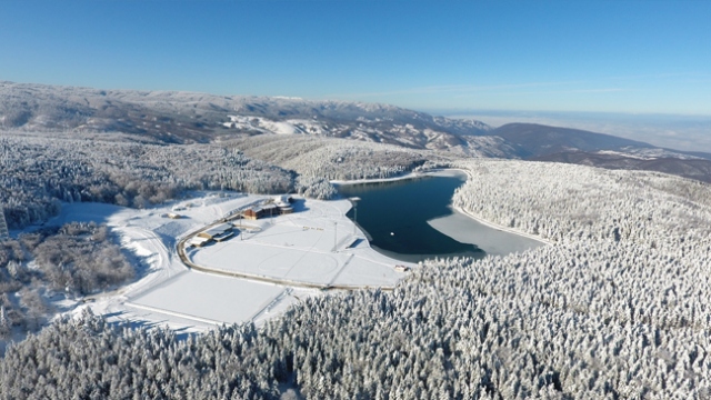 Buz tutan Topuk Yaylası Göleti havadan görüntülendi