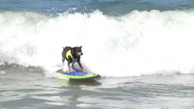 ABD'de 3'üncüsü düzenlenen Dünya Köpek Sörf Yarışması'na katılan köpekler şampiyonluk için yarıştı.