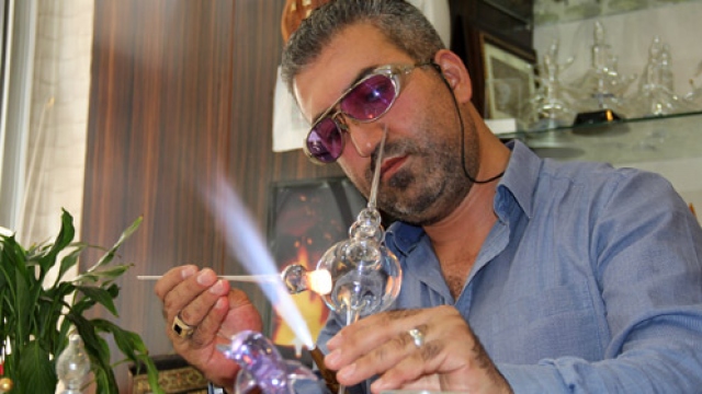 Sivas'ta yaşayan Halil İbrahim Mert, cam üfleme sanatıyla birbirinden güzel süs eşyaları üretiyor.