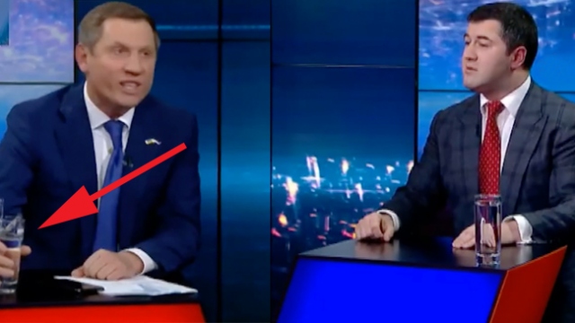 Ukrayna Milletvekili Sergey Sahov, canlı yayında Ukrayna başkan adayı ve aynı zamanda eski Devlet Mali Hizmeti Başkanı Roman Nasirov’un yüzüne su fırlattı.