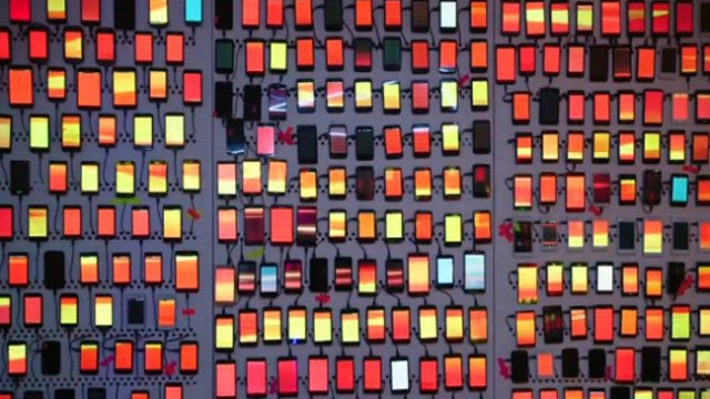 Cep telefonlarından oluşturulan ışıklı duvar