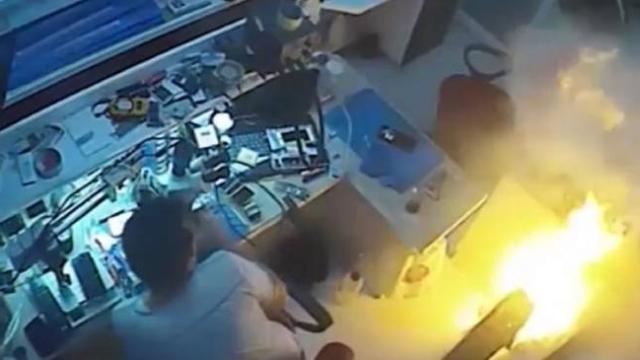 Cep telefonunun patlama anı güvenlik kamerasına yansıdı