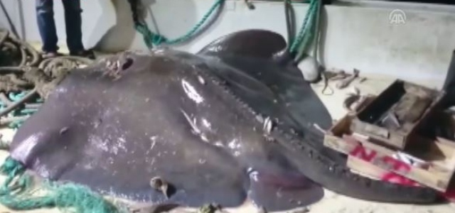 İzmir'in Çeşme ilçesi açıklarında bilimsel araştırma yapan bir ekibin denizden çıkardığı ağın içinden kanat açıklığı 2 metre 21 santimetre olan dev vatoz çıktı.