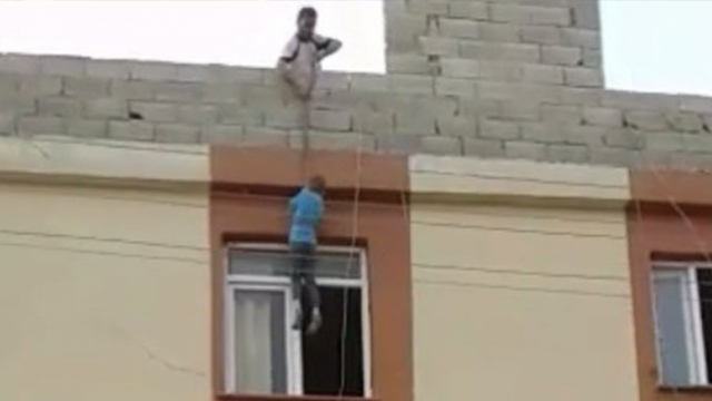 Çilingir çağırmak yerine çocuğunu iple çatıdan sarkıttı