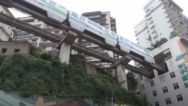 Çin'in güneybatısında "dağlık şehir" olarak bilinen Çongçing'in karmaşık arazi yapısı nedeniyle bir binanın içinde olan tren istasyonu, turistlerin ziyaret mekanı haline geldi.