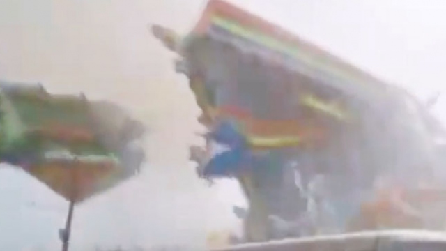 Çin'de fırtına nedeniyle oyun platformu uçtu