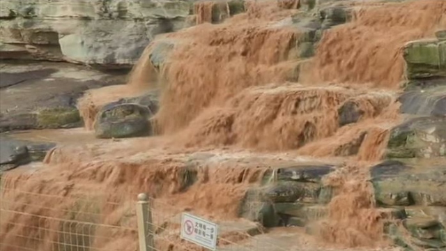 Çin'in Shanxi eyaletindeki turistik Hukou Şelalesi şiddetli yağışlar nedeniyle yılın belli dönemlerinde etkileyici bir manzaraya sahip oluyor.