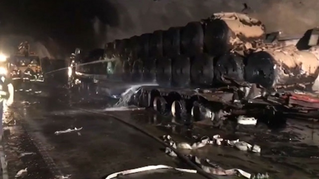 Çin'de iki TIR tünelde çarpıştı. Devrilen araçlardan biri dev kağıt ruloları, diğeri atık yağ taşıyordu. Çarpışma sonucu tünelde yangın çıktı.