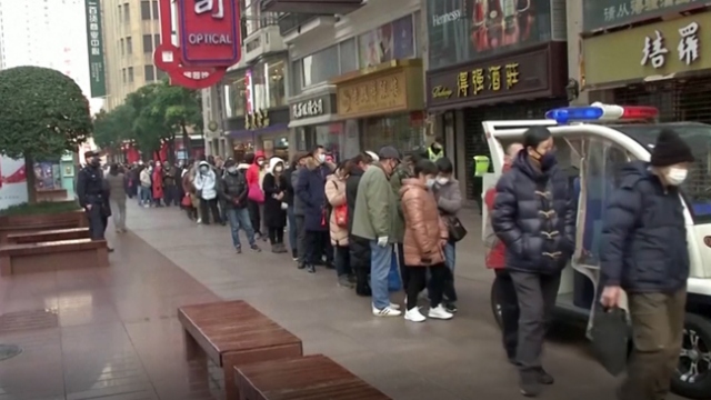Çin'de virüs kabusu sürüyor. Şangay'da yüzlerce kişi, yüz maskesi satın almak için metrelerce kuyruk oluşturdu.