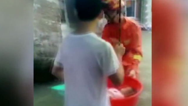 Çin'de meydana gelen selde mahsur kalan 5 aylık bebek, ilginç bir yöntemle kurtarıldı. Leğene konularak taşınan bebeğin görüntüleri, amatör kamerayla kaydedildi.