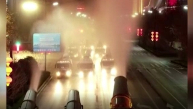Koronavirüs salgını nedeniyle binin üzerinde insanın hayatını kaybettiği Çin’de yüzlerce kamyon bir araya gelip sokaklara dezenfektan spreyi sıktı.