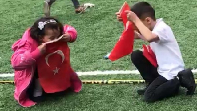 Giresun’un Doğankent ilçesinde 23 Nisan Ulusal Egemenlik ve Çocuk Bayramı kutlamaları sırasında çocukların Türk bayrağına olan sevgisi kameraya yansıdı.