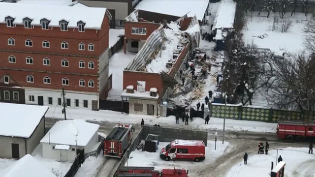 Rusya'da bir binanın çatısı büyük bir gürültü ile çöktü. İnsanların yola düşen büyük parçalardan kurtulduğu anlar, bir iş yerinin güvenlik kamerasına yansıdı.