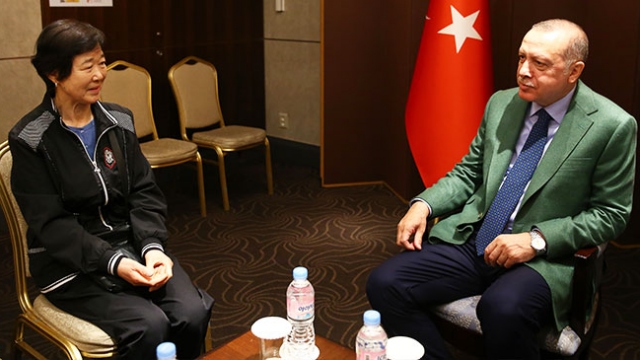 Cumhurbaşkanı Recep Tayyip Erdoğan, Güney Kore'deki temasları kapsamında, başkent Seul'de Ayla filminin Koreli gerçek kahramanı Eunja Kim ile bir araya geldi.