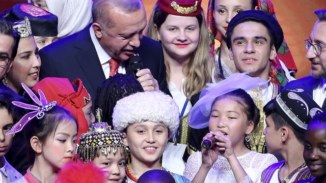 Cumhurbaşkanı Recep Tayyip Erdoğan, Beştepe Millet Kongre ve Kültür Merkezi'nde, TRT 23 Nisan Gala Programı'na katıldı. Erdoğan, "Beraber yürüdük biz bu yollarda" şarkısını Kırgızistanlı çocuk ile birlikte seslendirdi.